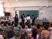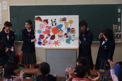 10月14日(金)の午後、旭東中学校図書部14名が本校に来てくれ、小学校1・2年生に読み聞かせをしてくれました。