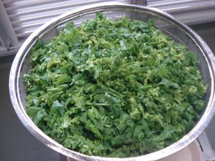新森小路小学校では約15キログラムの菜の花を使いました。市販されている菜の花の束が150gとしたら100束使ったことになります。すごい量ですね。