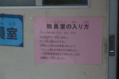 その一環として、今年度から職員室に入るときもしっかりあいさつができるよう、職員室入室時のルールを新しくつくりました。