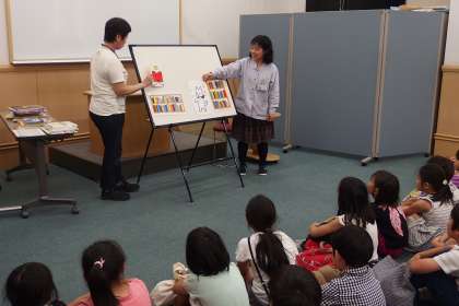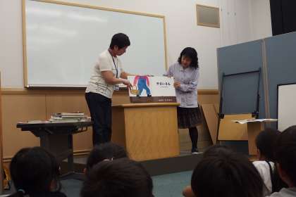 旭図書館では、図書館の利用の仕方をパネルシアターで教えてもらったり、大きな絵本の読み聞かせをしていただいたりしました。
