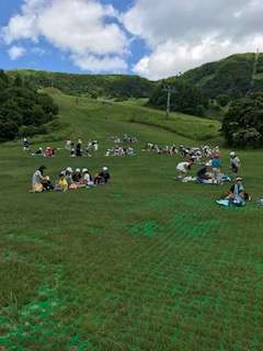 心地よい風が吹くなか、グループで楽しいお弁当タイムの開始!