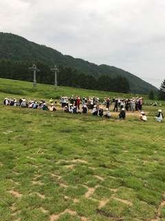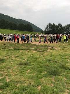まず、1組のみんなが手本を見せ、その後は、2組、3組も全員が輪になって踊りました。