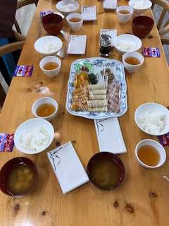 今朝は、春巻きやウィンナーなどのおかずに、ご飯に豆腐とわかめの味噌汁です。