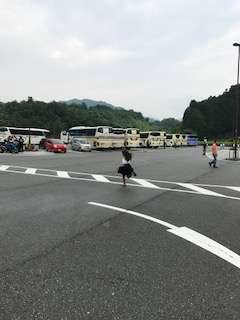 新森小路小学校と同じく、林間学習を終えて帰る小学校のバスも多く停車しています。