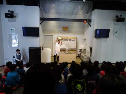 サイエンスショーではバラの花や風船がマイナス200度の液体窒素で瞬時に凍る様子を見て、歓声があがっていました。