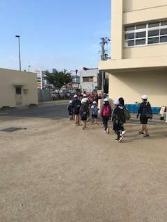 晴天に恵まれ、縦割り班によるウォークラリーに元気に出発しました。
