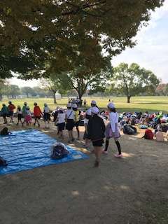ウォークラリーを終えて、縦割り班が続々とゴールしています。