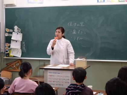 本日、4年生に、歯科衛生士さんによる歯みがき指導とフッ素塗布を行っていただきました。