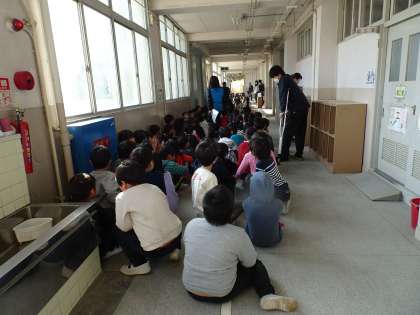 最初は地震を想定して、運動場に避難をしました。その後、津波を想定して、校舎3階まで避難しました。