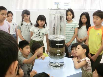 淀川の水が、おいしい飲料水になるまでの過程を、色々な実験を観察したり、本物の施設を見学したりしながら学習しました。浄水場の方々が丁寧にわかりやすく説明してくださいました。