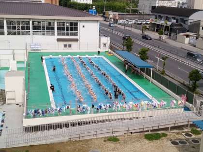 プール開きは、水に慣れ、プール水泳学習のルールや約束事をしっかりと身に付けることが大切です。安全で楽しく、泳力を伸ばしていけるよう取り組んでいきたいと思います。