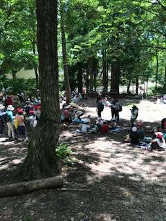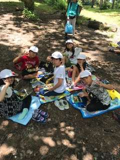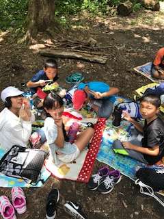 日陰でのお弁当タイムです。日差しはきついですが、日陰に入るとさわやかな風も吹いて、涼しく過ごせます。