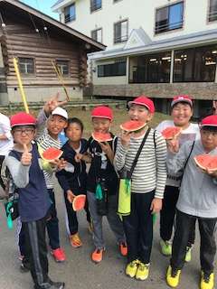 オリエンテーリングで疲れた体に、冷えたスイカがとても美味しいです。
