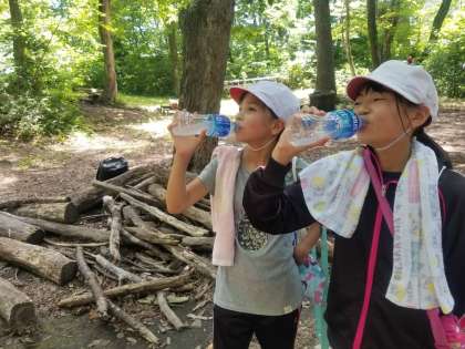 登山したメンバーは、みんな戻って来られました。登山後はスポーツドリンクを飲んで休憩です。