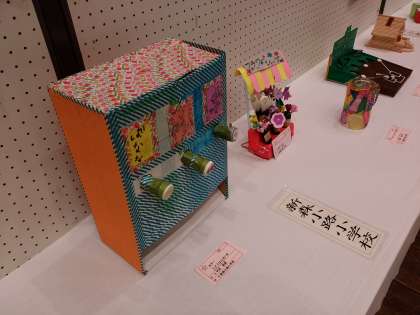 9月28日(金)旭区民センターで、旭区老人クラブ連合会主催の「趣味の作品展」が開催されました。そこに本校から各学年1名、計6名の児童の作品を展示していただきました。夏休みに制作した作品は、どれも力作ぞろいでした。