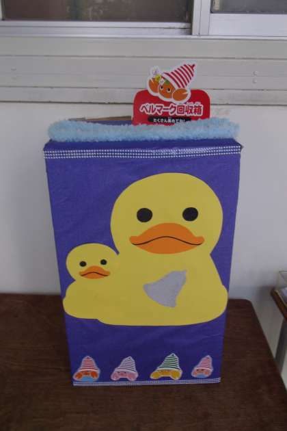 また、ベルマーク回収箱も作っていただきました。直接入れることで、子どもの集める意欲がアップすること間違いなし!