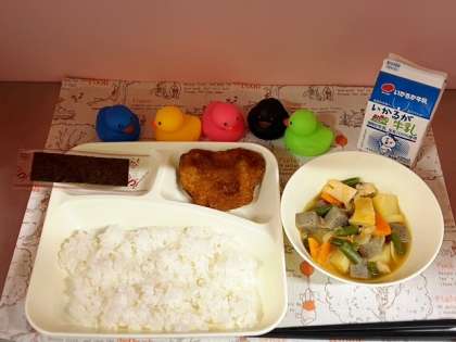 1人1個のトンカツに八丁みそを使用したみそだれをかけた献立です。
