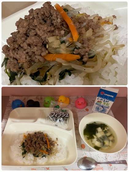 牛ひき肉・豚ひき肉をにんにくとごま油で風味良く仕上げ、コチジャンで旨味を増した甘辛味でした。