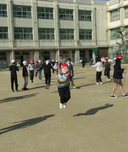 3分間の終了後も縄跳びをしている子がたくさんいました。