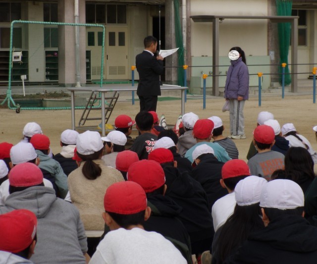 今日の児童朝会では、ソフトボールでがんばった子と図工で表彰状をもらった子を紹介しました。