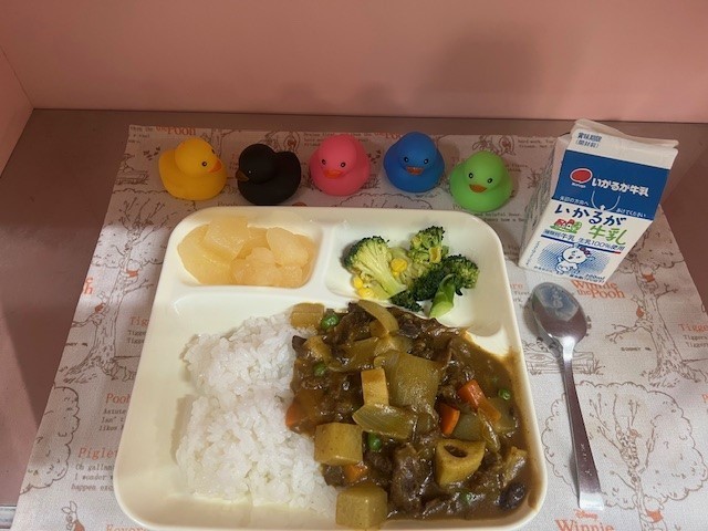 今日は2学期最後の献立にふさわしいカレーライスの日で、子どもたちも大喜び😊