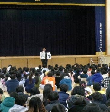 始業式では、今年は60年に1度の丙午(ひのえうま)にあたる年で、エネルギーに満ちた年だと言われているので、「エネルギー全開でがんばろう!」という話をしました。