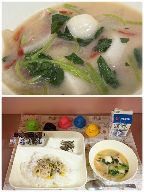初日は【正月の行事献立】で、金時にんじんを使用した「ぞう煮」や「ごまめ」が登場しました。