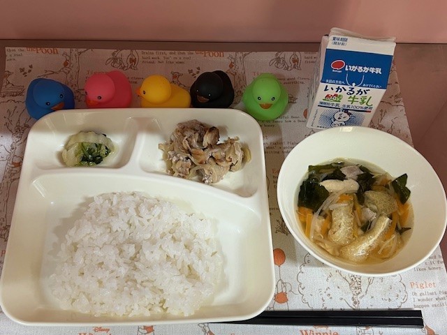 今日の「豚肉のスタミナ焼き」は、豚肉とたまねぎを材料に、にんにくのみじん切り、調味料に砂糖・こいくちしょうゆともう一つ、ある調味料が使われています。その調味料とは何でしょう??