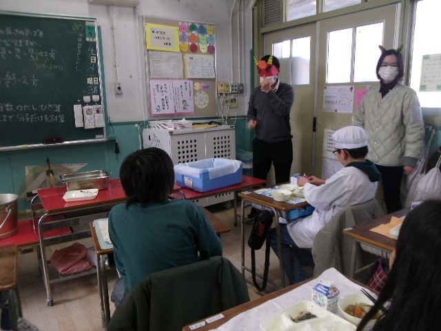 しっかり食べているか、各教室に鬼が現れたそうです。