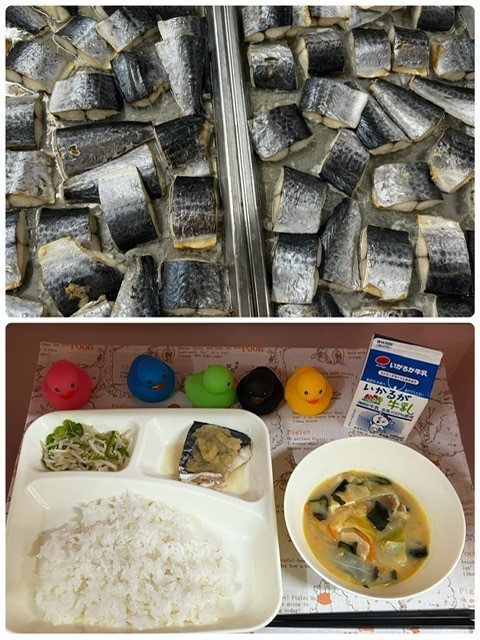 1人1切れのさごしを焼き物機で焼き、だいこんおろし・みりん・うすくちしょうゆで作ったタレをかけています。