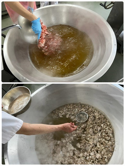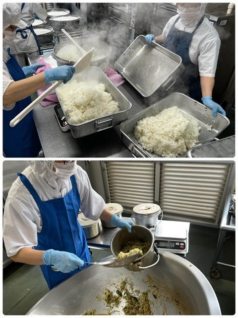 豚肉・うすあげ・たまねぎ・キャベツ・にんじん・わかめを使用した、児童に人気の汁物です。