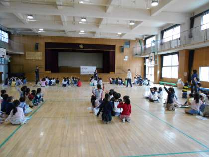 学校たんけんでは、2年生が優しくリードして、1年生を案内していました。