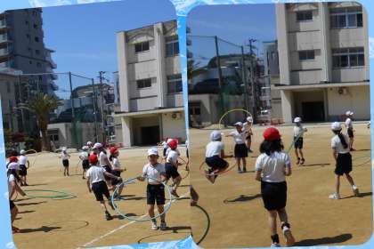 汗ばむほどの春の陽気の中、子どもたちは体育の学習に取り組んでいました。