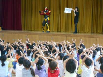 防犯に関する〇×クイズをしたり、『まもる体操』を一緒に踊ったりしました。