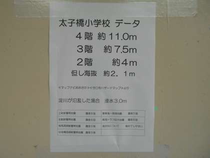 今朝の児童朝会で、校長先生から太子橋小学校で想定される浸水の高さについてのお話がありました。