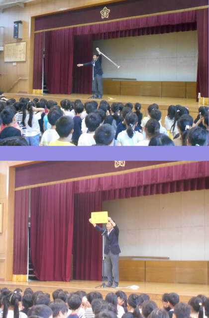 校長先生から、振り子を使って『時の記念日』についてのお話がありました。
