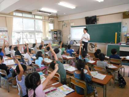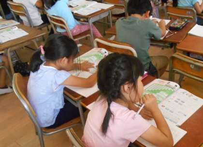 子どもたちは先生の話をしっかり聞いて、一生けん命に考えていました。