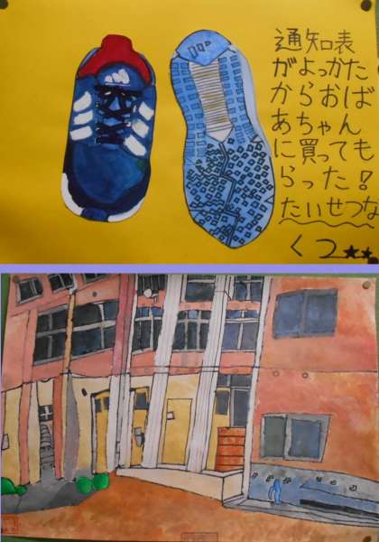 『靴の絵』は、ことばを添えることにより、さらに思いのこもった作品になっています‼