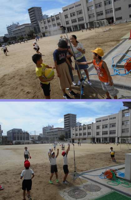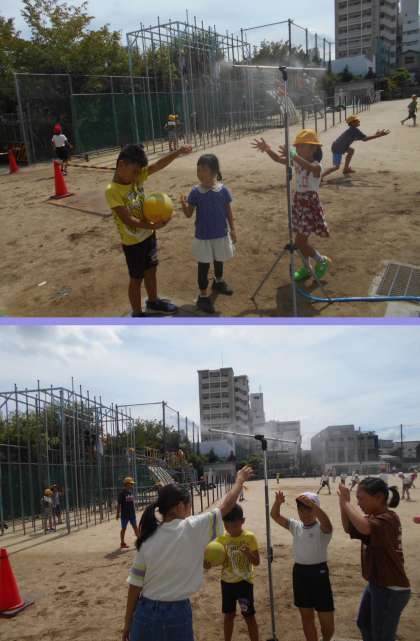 子どもたちがミストにあたりに来て、気持ちよさそうにしていました!