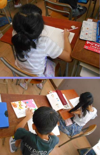 隣のクラスでは、先日きれいに名前を書いた漢字ドリルの学習をしていました。