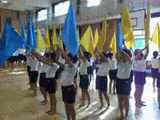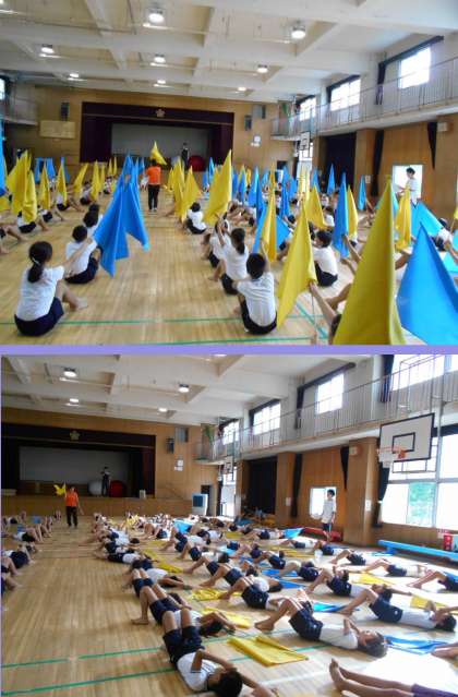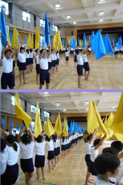 当日は、組体操とフラッグを組み合わせた演技を披露するそうです。