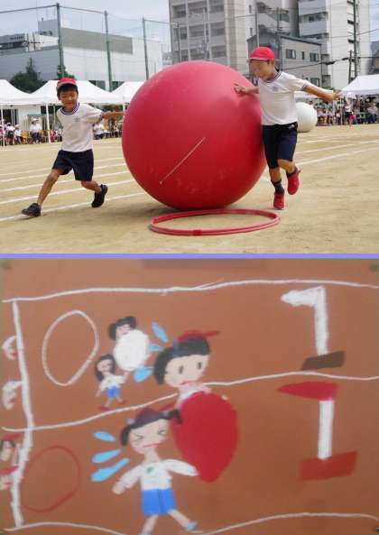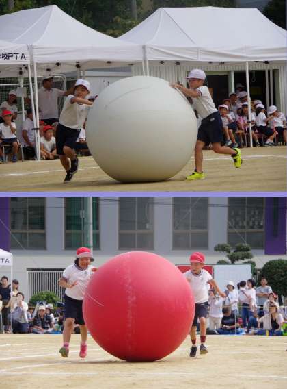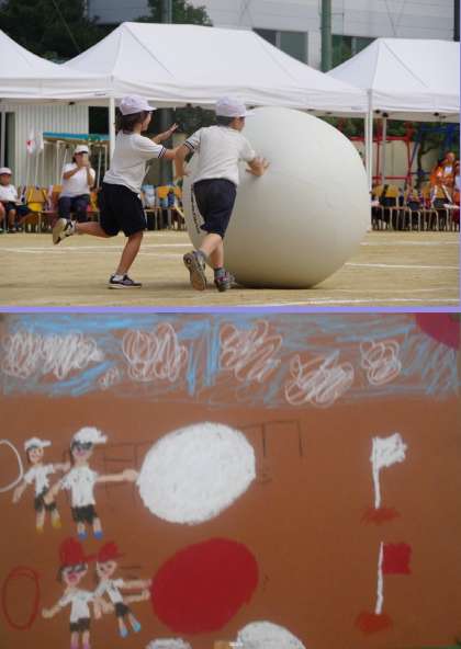 思うように大玉を転がすのは難しいので、2人で息を合わせてがんばりました‼