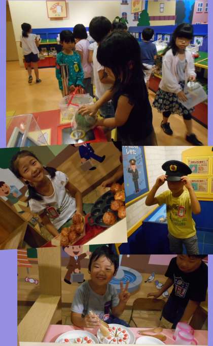 『キッズストリート』には『たこ焼き屋さん』『ケーキ屋さん』などの屋台があり、お店の人になって遊びました!