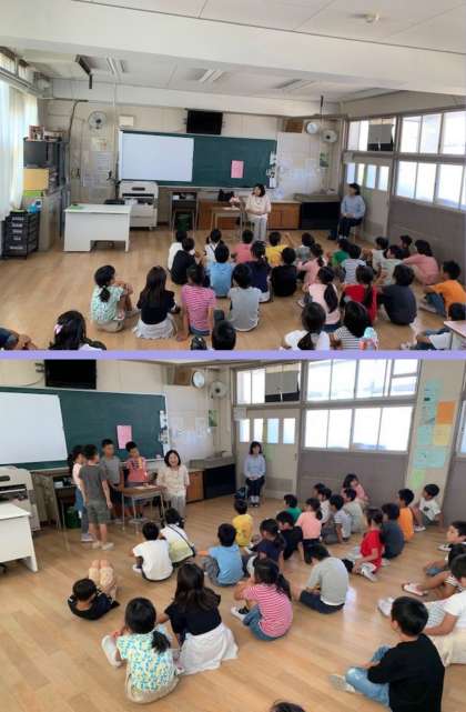1年生には、お話に出てくる『動物のクイズ』や『まねして手たたき』などで気持ちが途切れることのないように工夫をしてくださいました。