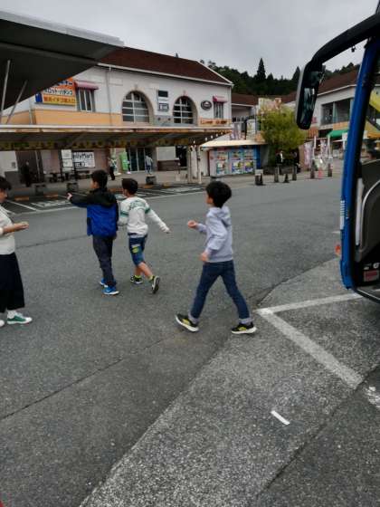 はじめのサービスエリアに着きました。天気は曇りです。今から1回目のおやつタイムです。