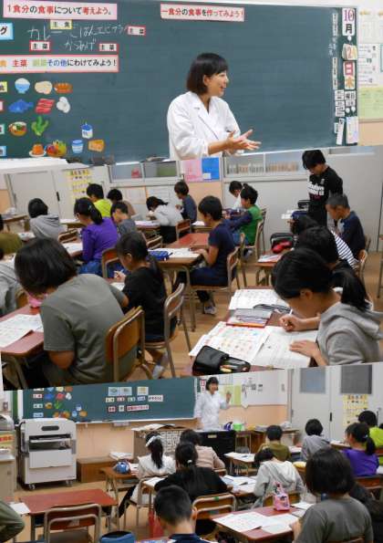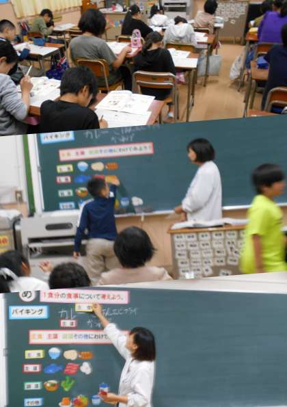 5年生・栄養指導のテーマは、『主食・主菜・副菜について考えよう』でした。