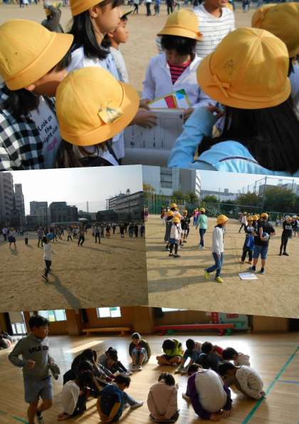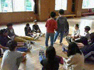 リーダーのところに集まって、活動の前に予定を確認しています。