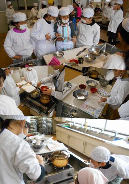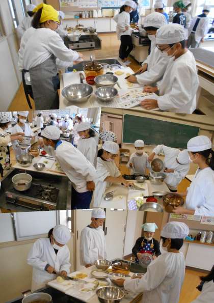 包丁の扱いに気を付けて具材を切り、教科書で手順を確かめながら慎重に調理していきました。