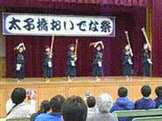 講堂の舞台の上では、音楽に合わせて『けん玉』や『コマ』の大技を次々と見事に決めていました。『剣道の演武』は、とても迫力があったのでビックリしました‼