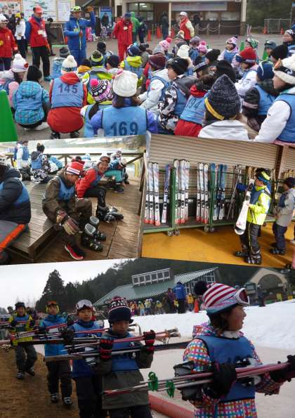 一人ひとりスキー用具を借りて、ゲレンデ下まで降りていきます。